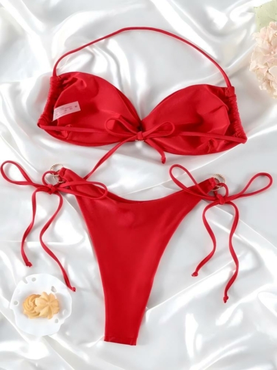 Đồ bơi B139 gồm 2 mảnh là áo bikini cột dây + quần chip cột dây