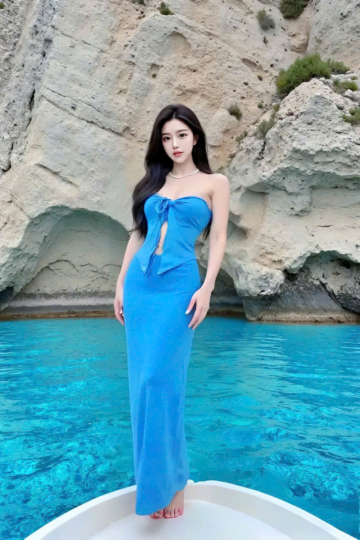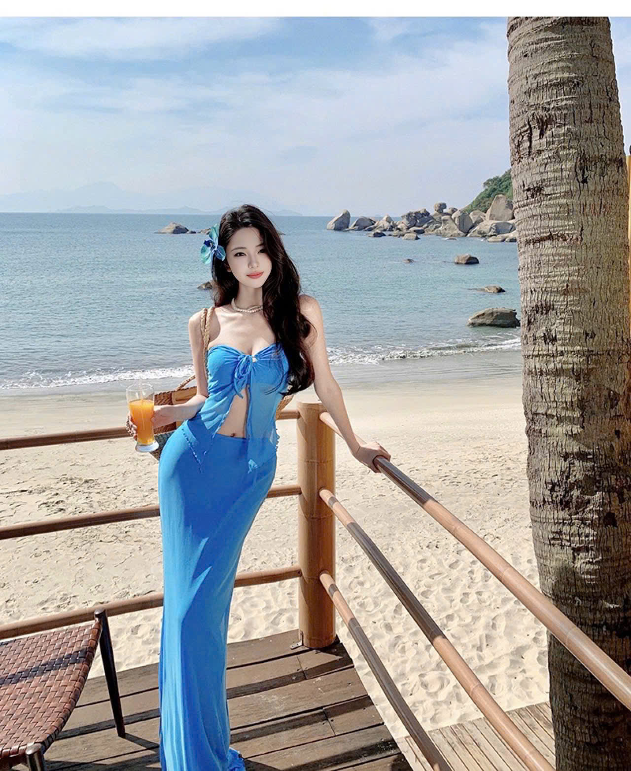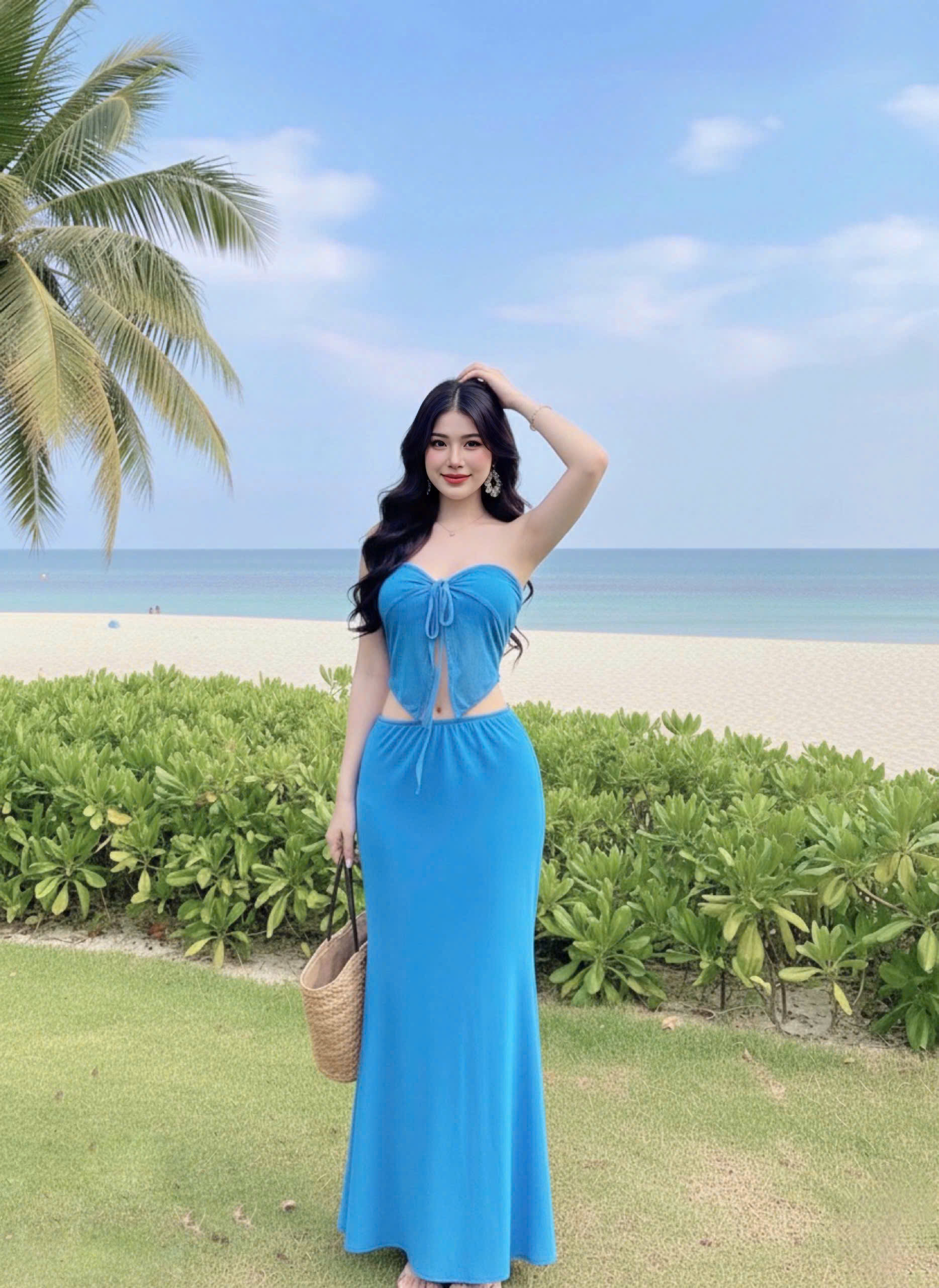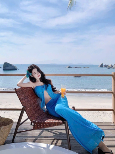 Set bikini S39 gồm 3 món : áo bikini cột dây cổ + quần chip + váy dài